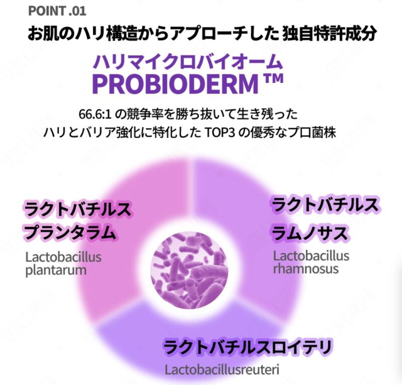 バイオヒールボ 3Dリフティングクリームは、独自技術「プロバイオダーム™」を中心に、乳酸菌、パンテノール、β-グルカンなどの美容成分が配合されています。